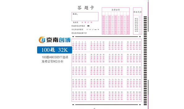 答題卡(又稱信息卡),是光標閱讀機輸入信息的載體,是配套光標閱讀機的各種信息錄入表格的總稱。信息卡將用戶需要的信息轉化為可選擇的選項,供用戶涂寫。OMR設備根據信息點的涂與未涂和格式文件設置將信息還原。
