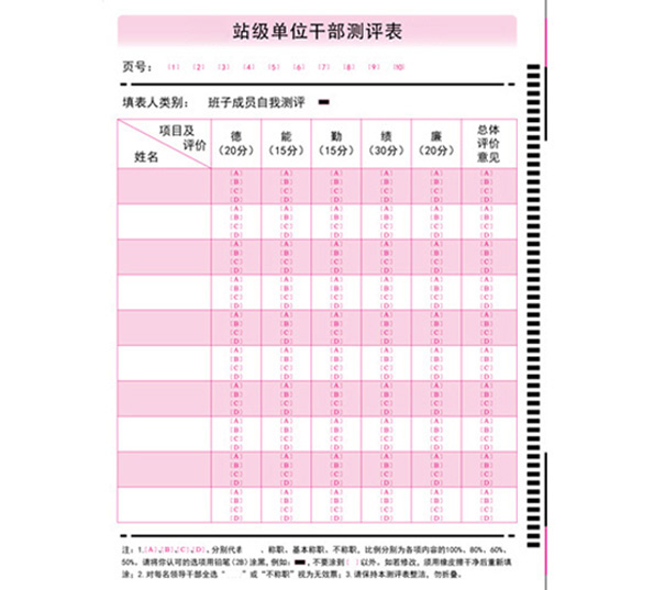 測評答題卡:可應用于行業測評,單位測評考核等領域。